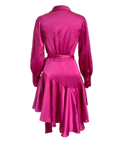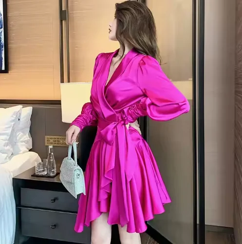 Women's High-Waisted Ruffled Knee-Length Dress Elegant Casual Style Waist Tie Mix Fabric Anti-Wrinkle Customizable